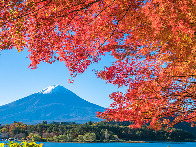河口湖位於富士山的山腳,您可從不同位置欣賞各種富士山的美景。